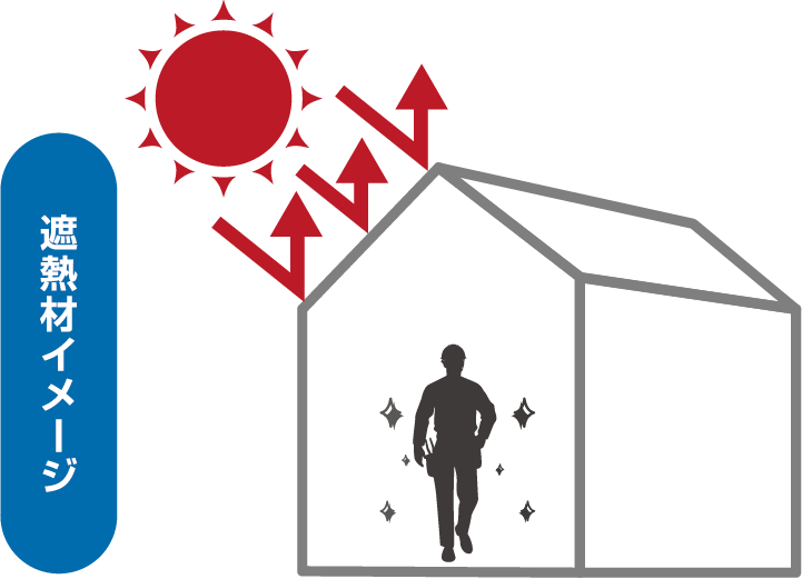 - 屋根からの輻射熱を反射して室温上昇を抑える